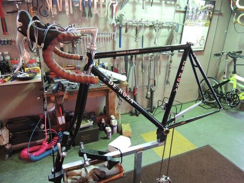日本国内100台限定 DE ROSA NUOVO CLASSICO(2012年モデル)中古車をお預かりしました。 カラー:LONDON GREEN シートチューブサイズ:50cm(CC) トップチューブサイズ:52.5cm コンポ:CAMPAGNOLO・ATHENA ペダル:CAMPAGNOLO・RECORD TITANIUM ホイール:…